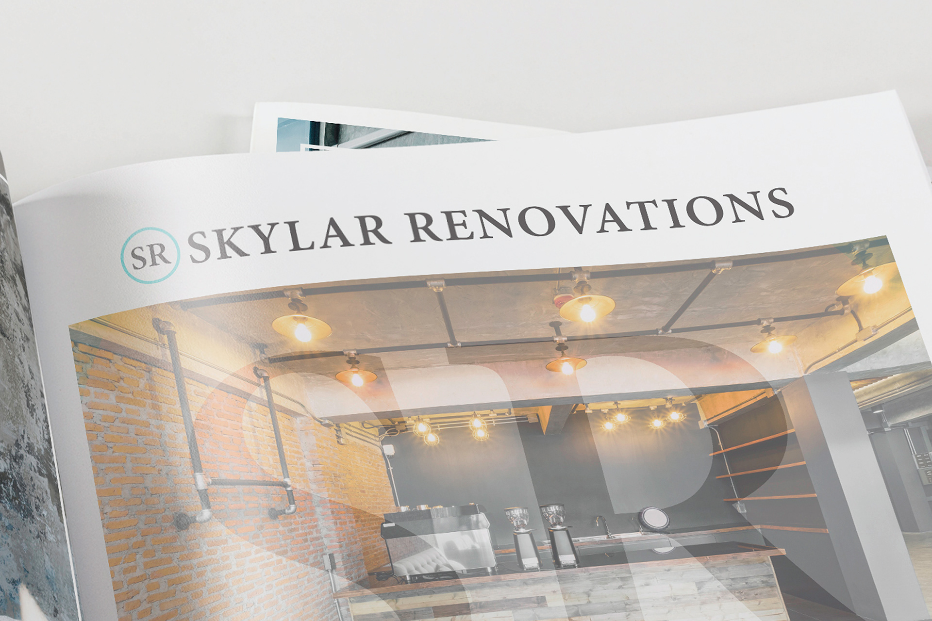 Custom logo and editorial/magazine design for a home and commercial renovations company, Skylar Renovations.